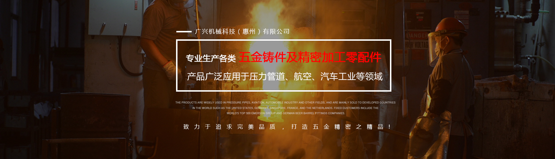 公司專業(yè)生產(chǎn)各類五金鑄件及精密加工零配件,可熔煉材質(zhì)為全系列不銹鋼及碳鋼,主要生產(chǎn)材質(zhì)有304316316L17-4430409等,年生產(chǎn)各種不銹鋼鑄件1000余噸。產(chǎn)品廣泛應(yīng)用于壓力管道、航空、汽車工業(yè)等領(lǐng)域,主要銷往美國、德國、新加坡、法國、荷蘭等世界發(fā)達國家,固定客戶有世界500強艾默生集團及德國啤酒桶配件公司。
